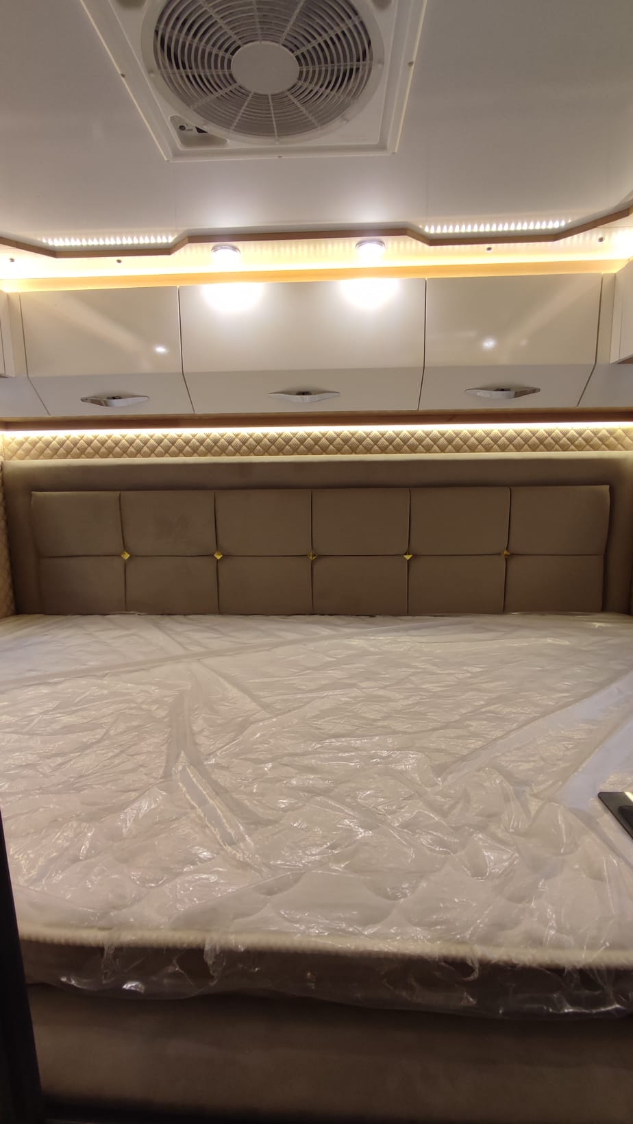 Alkoven Model, geniş iç hacmi, yüksek tavanı ve büyük pencereleriyle ferah bir yaşam alanı sunarken, ön kısımda yer alan alkoven bölmesi ek bir uyku alanı sağlayarak daha fazla kişinin rahatça konaklamasına imkan tanır. İç mekan, tam donanımlı mutfağı, oturma ve yemek alanı, banyo ve konforlu uyku bölmeleriyle seyahat ederken ev rahatlığını sunar.