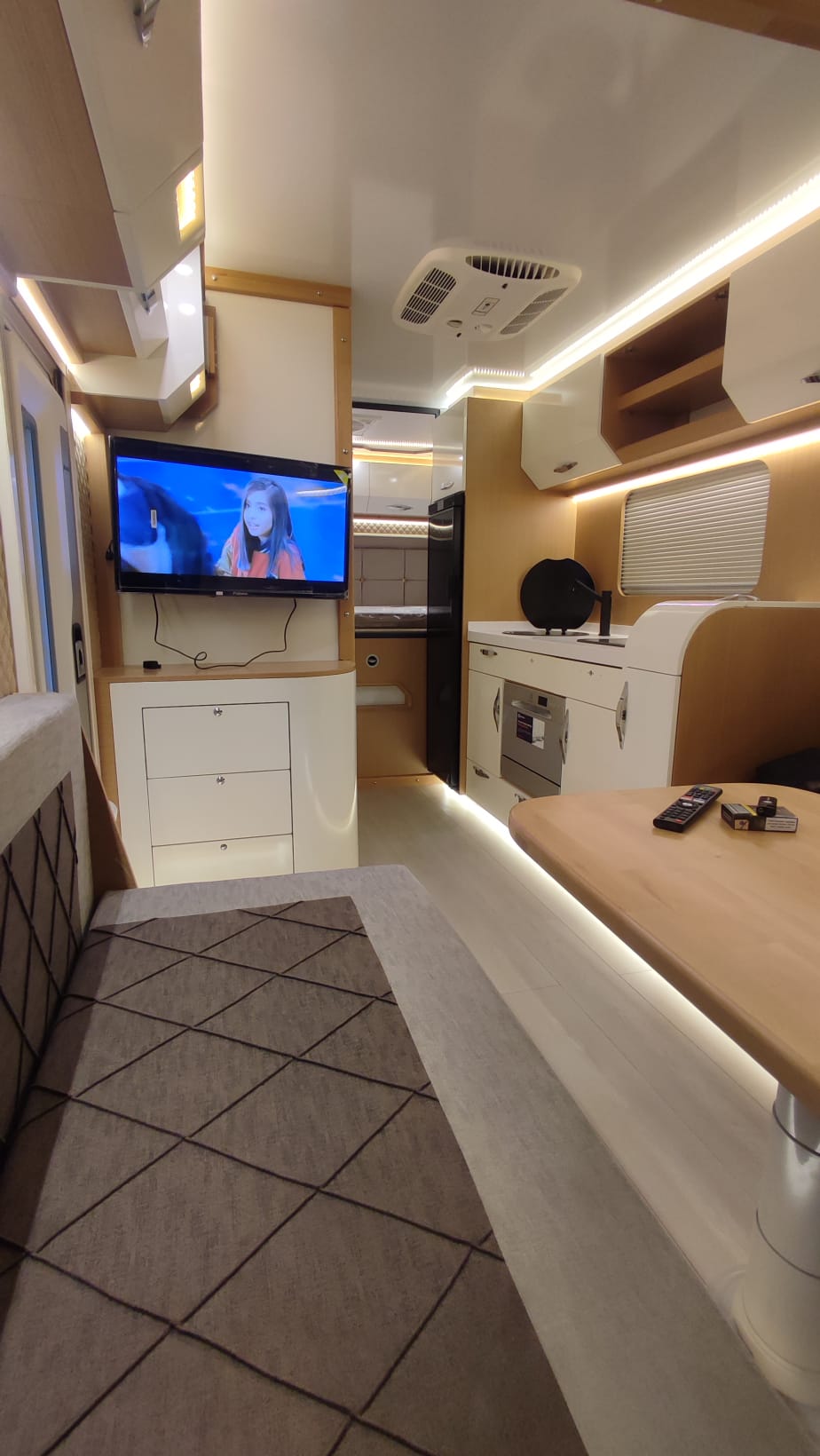Bu modelde kullanılan IVECO tabanı, karavana ekstra dayanıklılık ve uzun ömür kazandırırken, güçlü motoru ve gelişmiş şasi sistemi sayesinde uzun yolculuklarda yakıt tasarrufu ve konforlu bir sürüş sağlar.