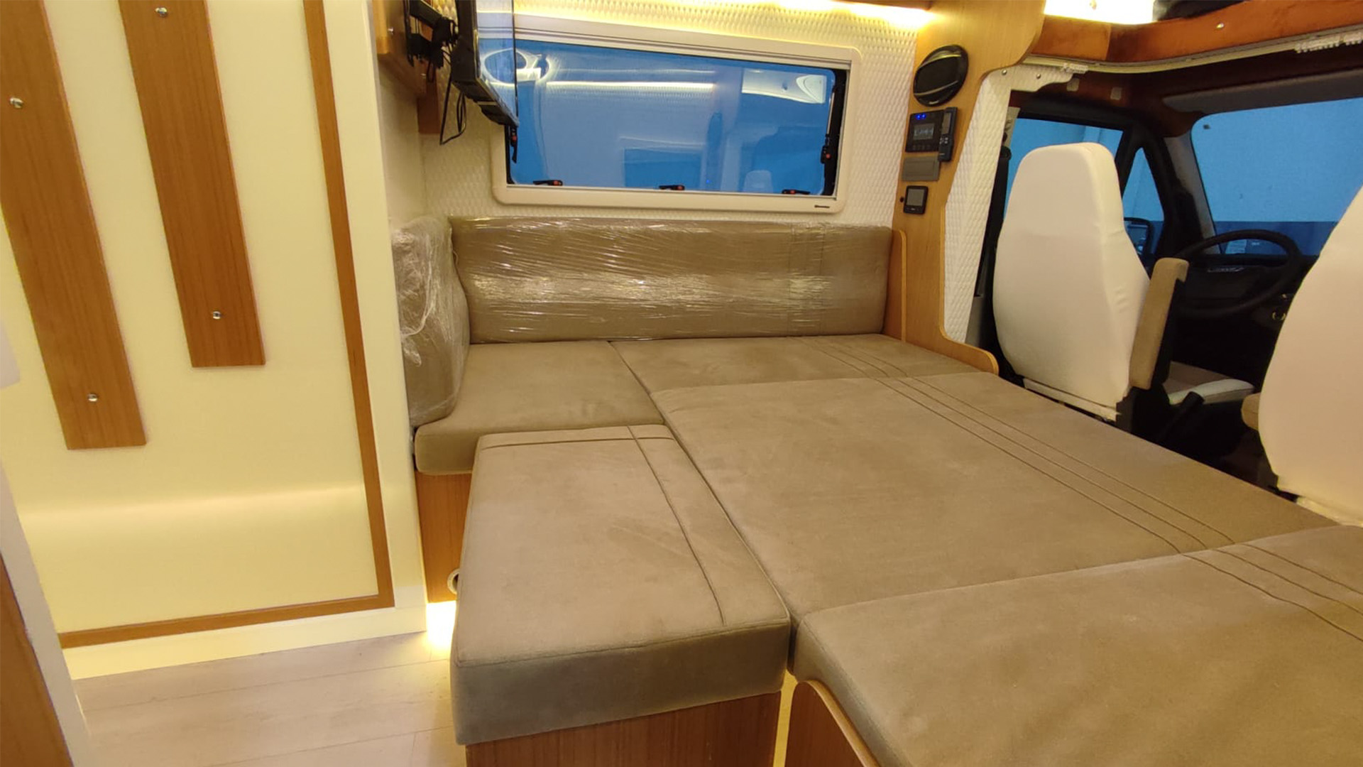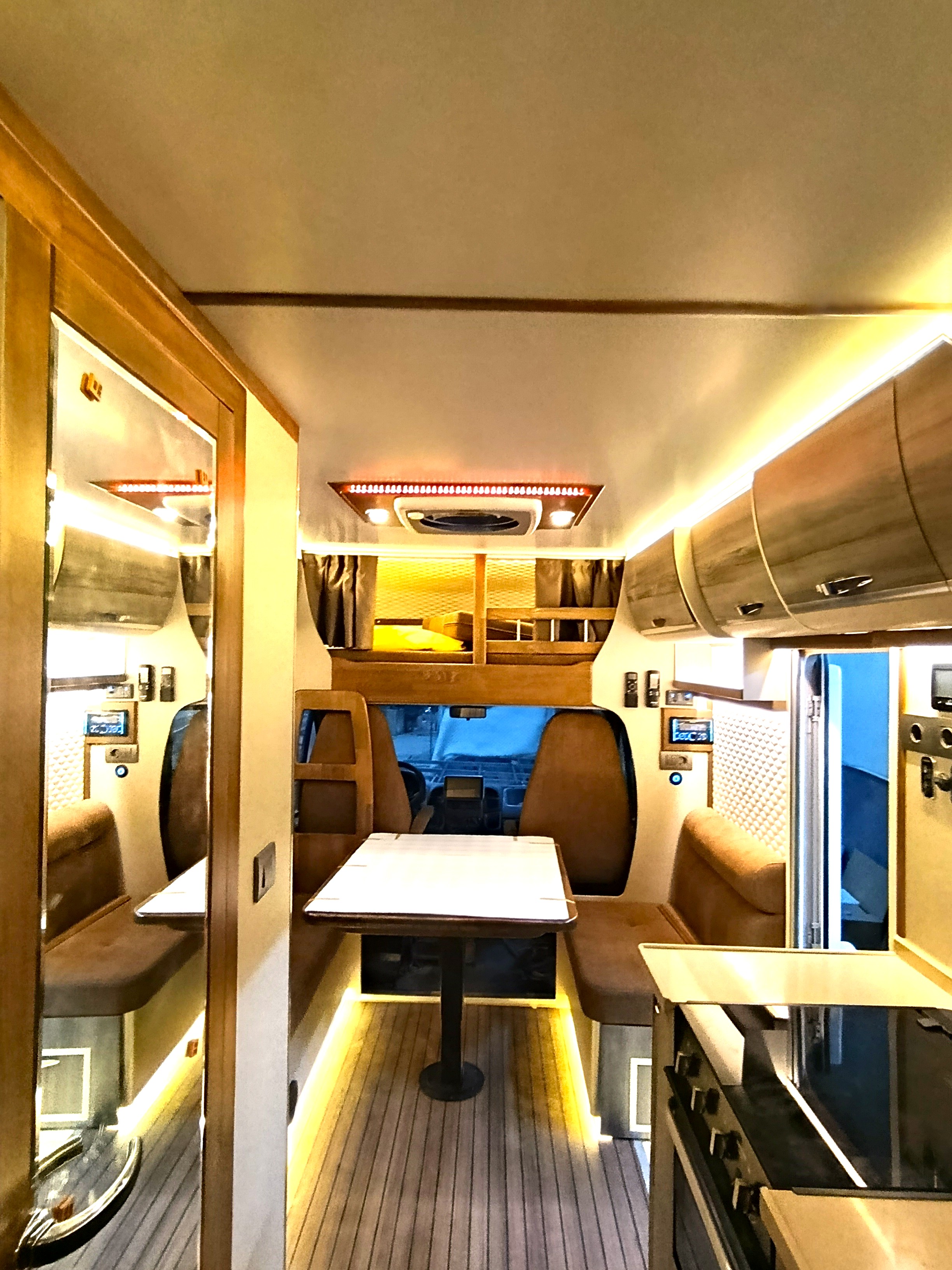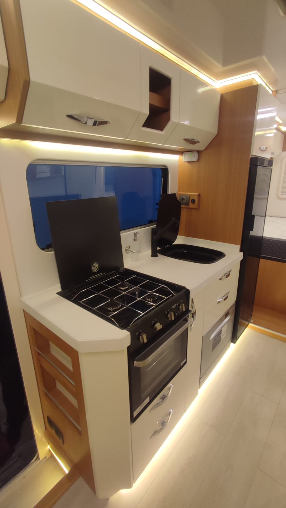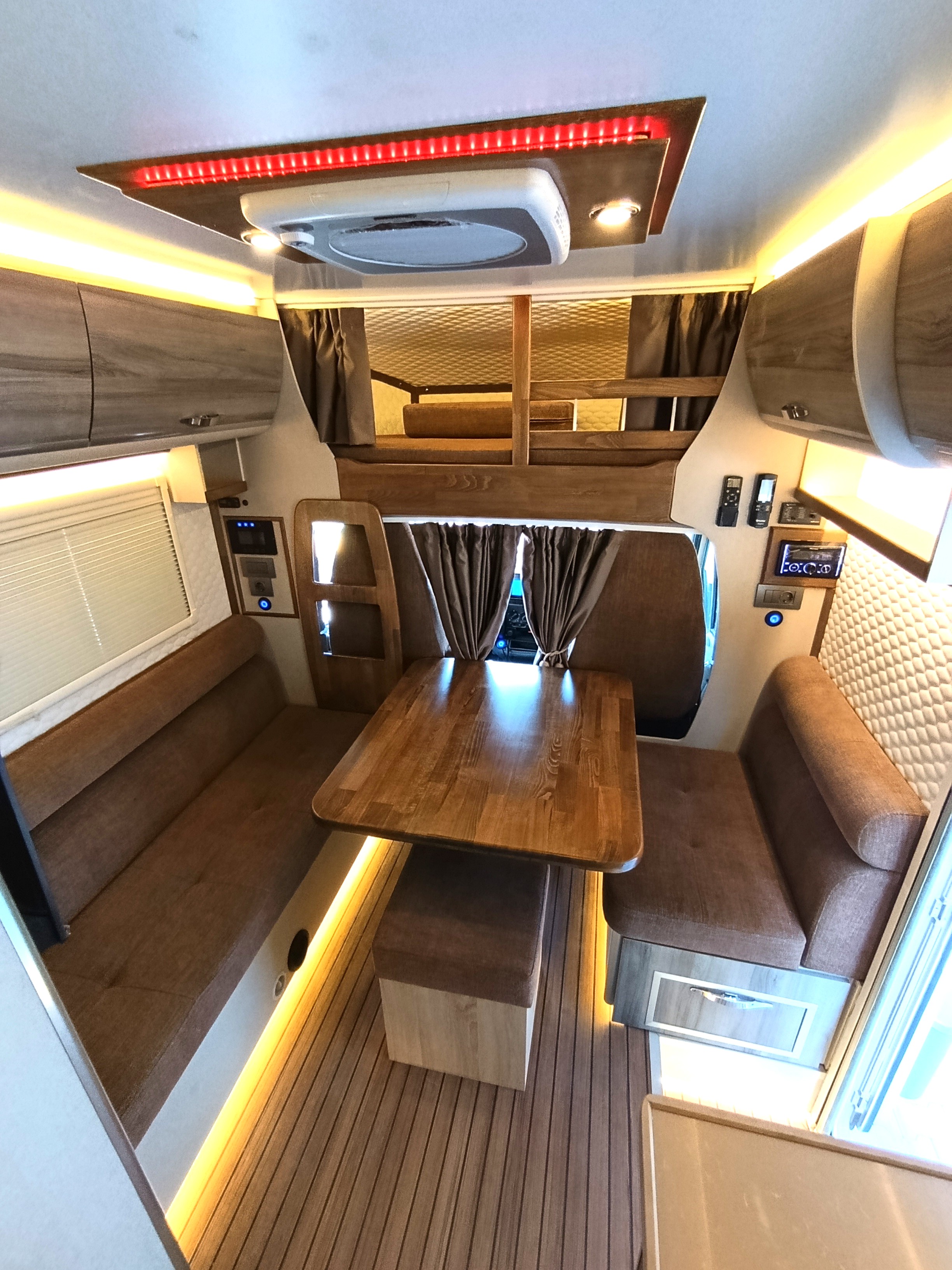 Gezginci Model, yüksek tavan yapısı, geniş camları ve ferah iç mekan düzenlemesiyle, doğayı ve manzarayı her an yaşama fırsatı sunar. Özel olarak tasarlanan iç mekan, tam donanımlı mutfağı, oturma alanı ve uyuma bölmesiyle bir evin konforunu sunar. Ayrıca, teknik donanımı sayesinde her türlü yol koşuluna uyum sağlar ve güvenli bir sürüş deneyimi sunar.